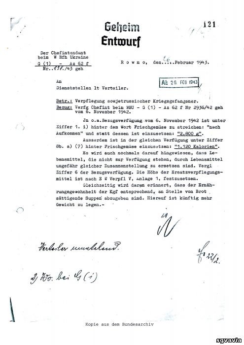 | Отрывок из приказа о нормах питания советских военнопленных от 29.11.41 г.